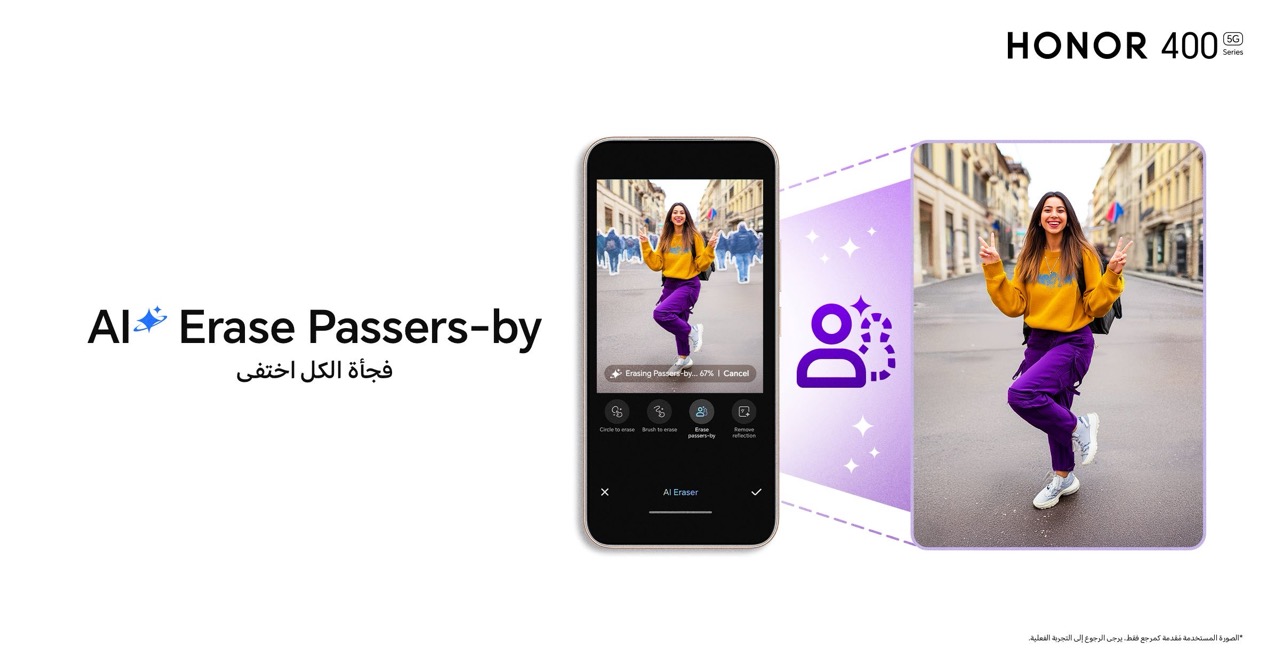 بفضل ميزات الذكاء الاصطناعي العديدة في هواتف سلسلة HONOR 400، فرحلة التصوير لا تنتهي بالتقاط الصور فحسب. فيساعد الذكاء الاصطناعي في التقاط الصور المذهلة بشكلها الأفضل، فهو يتيح الكثير من خيارات التعديل والتحسين اللاحق للصور مثل إزالة العناصر غير المرغوب بها، مثل الأشخاص في خلفية الصور الشخصية، من الصور دون ترك أثر، بالإضافة لتحسين الصور بما يشمل الصور القديمة التي يمكن رفع جودتها بشكل كبير واستعادة التفاصيل الضائعة منها، وحتى تحسين الأخطاء مثل تصحيح العيون المغمضة في الصورة، أو إزالة الانعكاسات، أو تحريك الصور وتحويلها إلى فيديو، أو حتى الاستخدامات الإبداعية مثل تحرير أجزاء من الصورة أو توسيع زاوية التصوير وتوليد أجزاء إضافية تغير طابع الصور بشكل دراماتيكي.