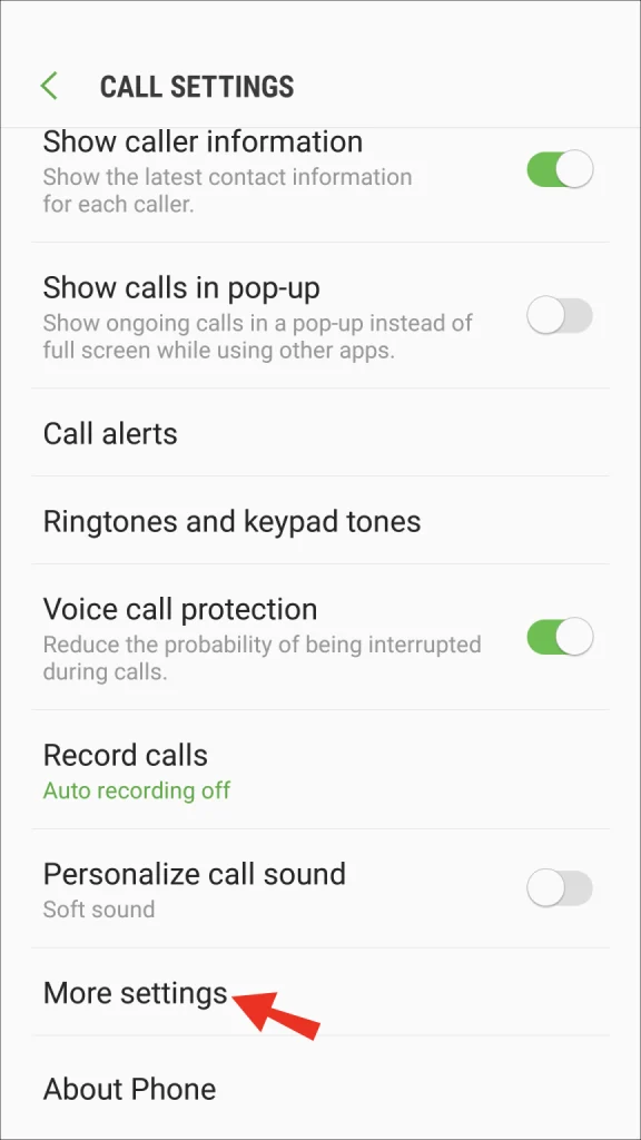 - قم بالتمرير إلى أسفل لعرض ميزات الاتصال الإضافية
