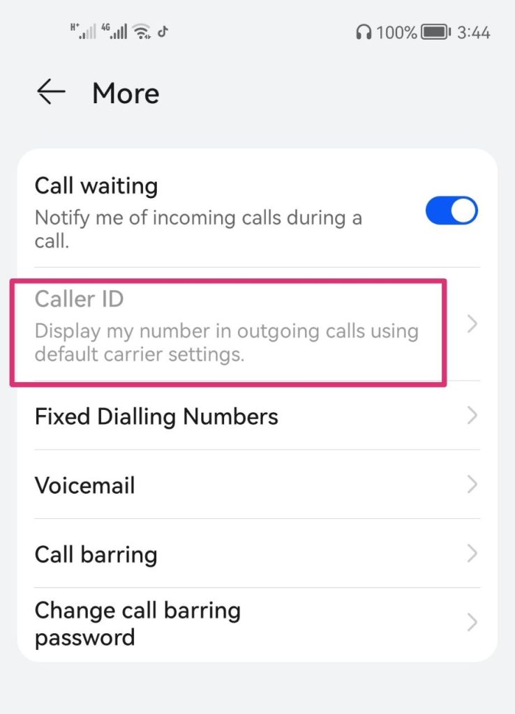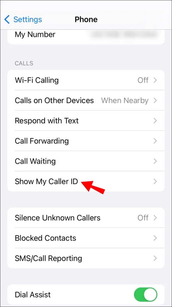 - ثم ابحث عن إظهار معرف المتصل الخاص بي