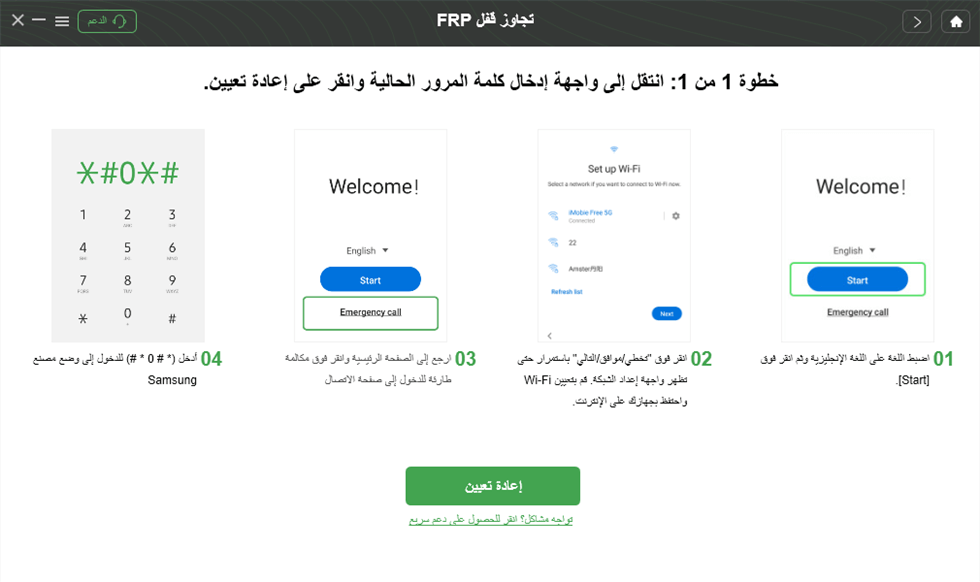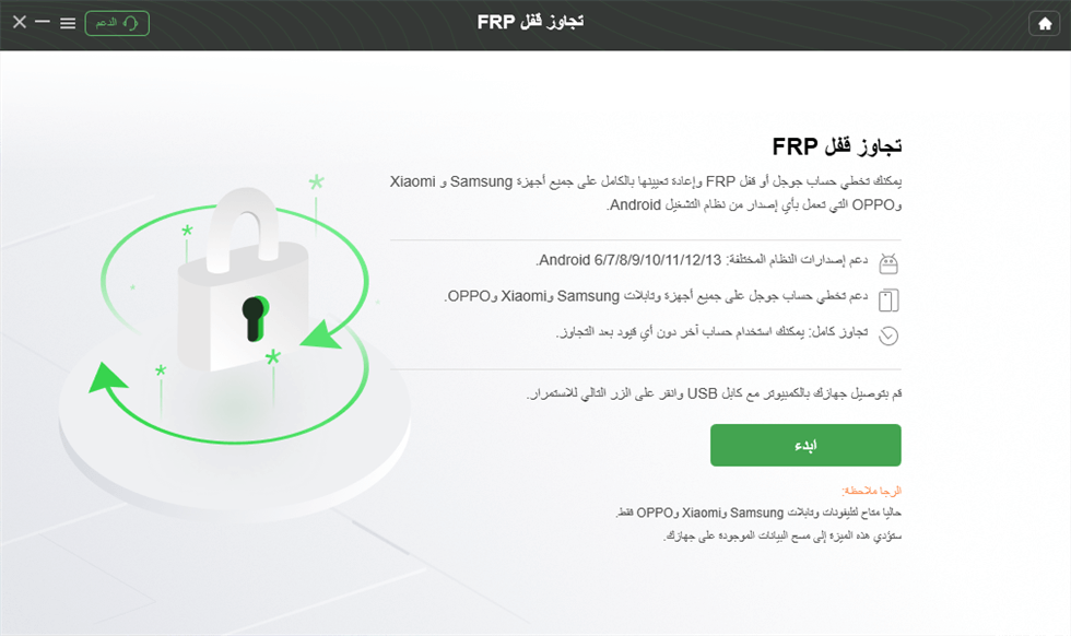 - بعدها اضغط على إبدأ في تجاوز FRP