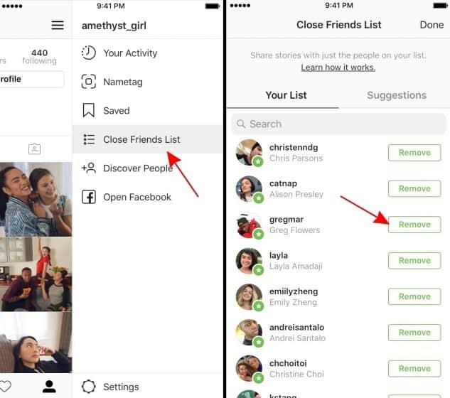 بعد تحديد قائمة الأصدقاء المقربين، يمكنك الآن إضافة أي عدد تريده من الأصدقاء إلى القائمة، ولإضافة أي اسم انقر على رمز “إضافة” أما اسم المستخدم، ولا يوجد حد لعدد الأصدقاء الذين ترغب في إضافتهم، كما يُمكنك حذف أي اسم بنفس الطريقة.