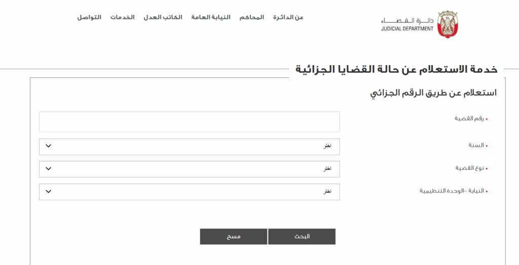 توفر محاكم دبي وأبوظبي والشارقة وغيرها خدمات إلكترونية تتيح متابعة القضايا الجزائية. ولنلقي نظرة سريعة بالخطوات على كيفية الاستعلام عن القضايا الجزائية من خلال دائرة القضاء في أبو ظبي: