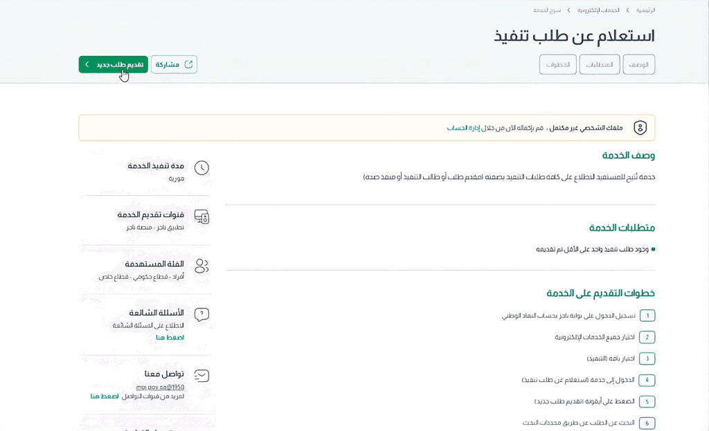 ماذا تعني حالات طلب التنفيذ (قيد التنفيذ – تم التنفيذ – منتهي) في منصة ناجز؟