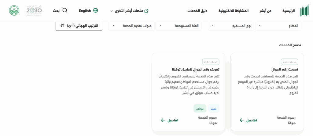 - التفعيل من خلال أحد البنوك المرتبطة بأبشر