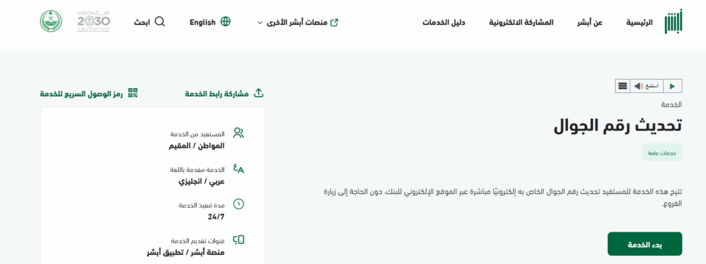كيفية تحديث رقم الجوال في أبشر بدون بصمة
