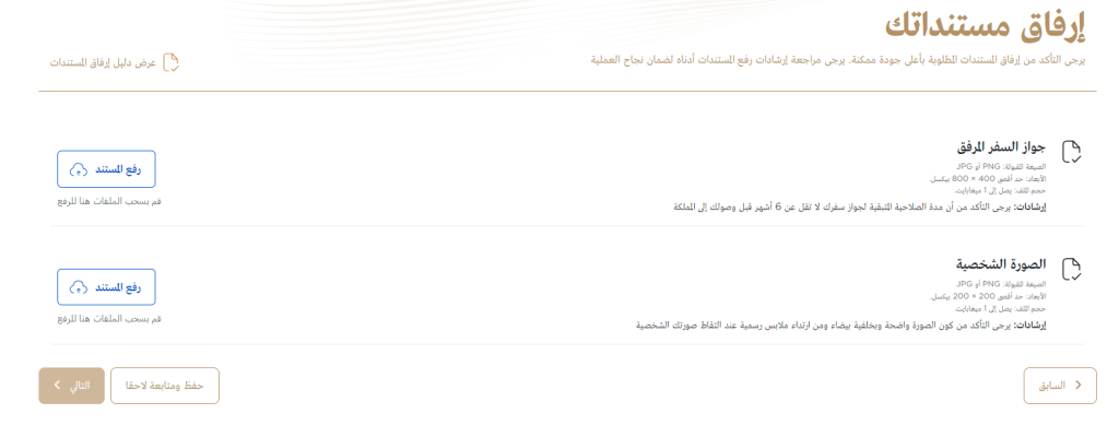 - تحتاج إلى إرفاق المستندات مثل جواز السفر وصورة شخصية