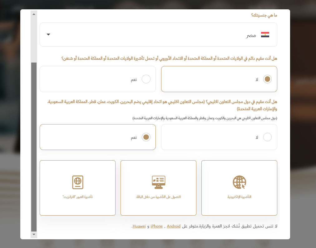 - أما إذا كانت إجابتك هي لا، حينها لن تستطيع حجز التأشيرة الإلكترونية