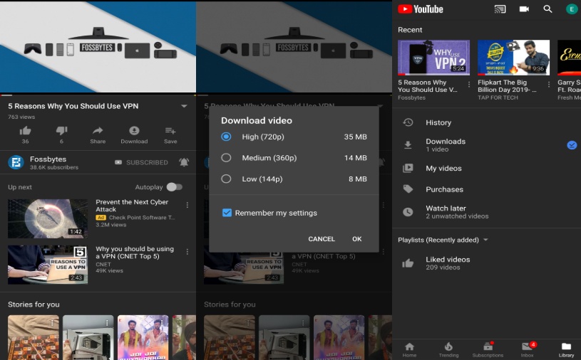 يتم تخزين الفيديوهات في قسم التنزيلات، يُمكنك مشاهدة الفيديو والاستماع إليه، حتى في حالة عدم الاتصال بالإنترنت.