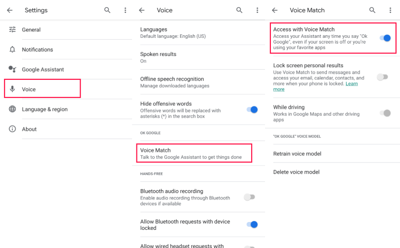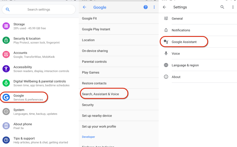 - اضغط على جوجل ثم البحث ثم المساعد ثم الصوت.