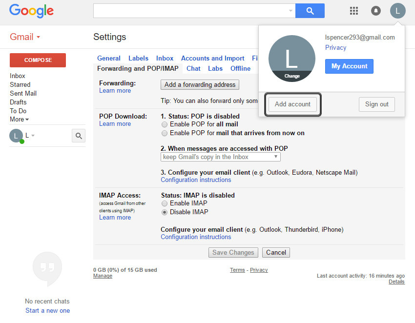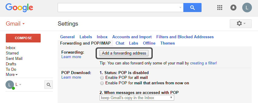 لدمج حسابات جيميل، فالخطوة الأولى هي إعداد إعادة توجيه البريد الإلكتروني.