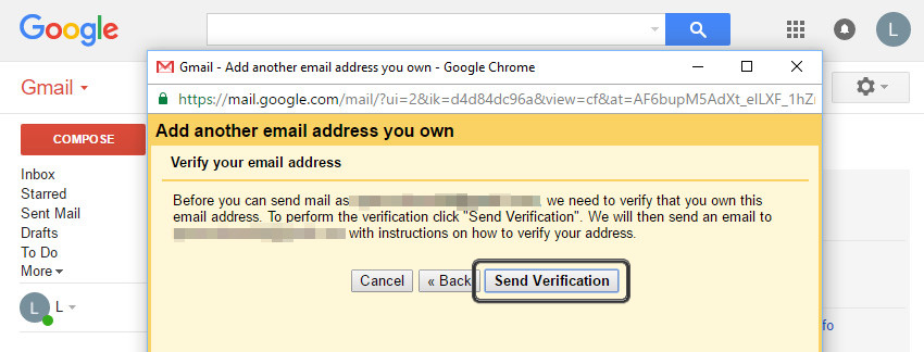 عندما يطلب منك جيميل، أرسل رسالة التحقق إلى عنوان البريد الإلكتروني الثانوي.