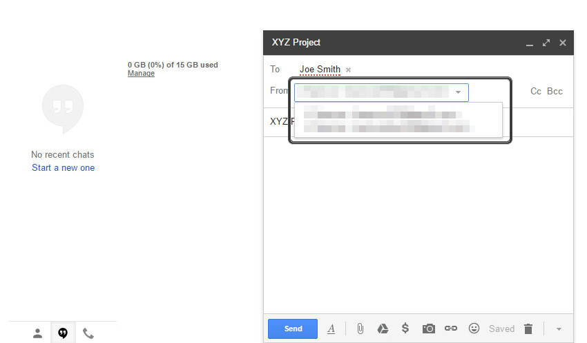 الخطوة 5: عند الاكتمال، سيكون هناك قائمة منسدلة في صندوق كتابة بريد المُرسل، حدد البريد الإلكتروني الذي تريد الإرسال منه.