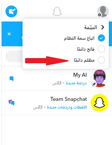 - ثم اختر من القائمة المنسدلة “مظلم دائما”