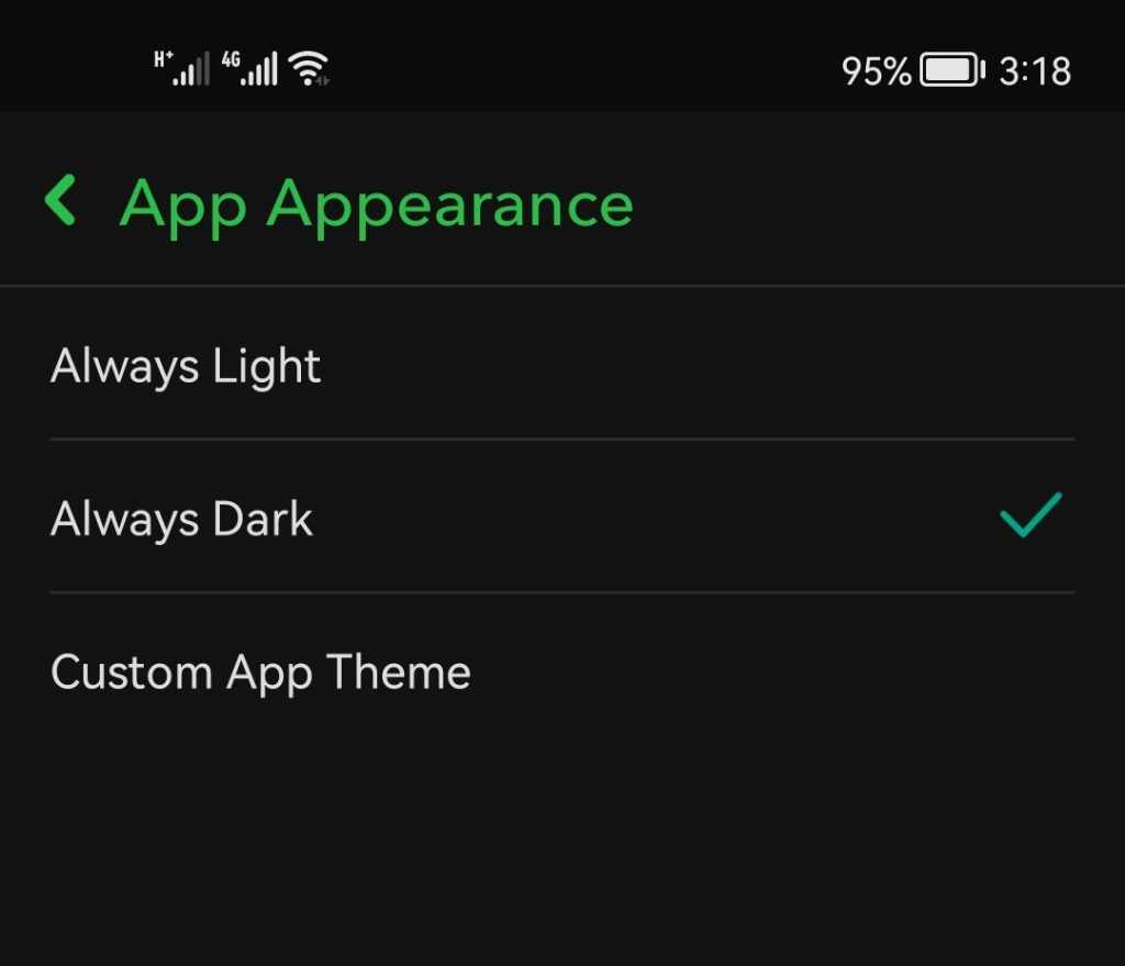 - ستجد ثلاثة خيارات، حدد خيار “مظلم دائما”