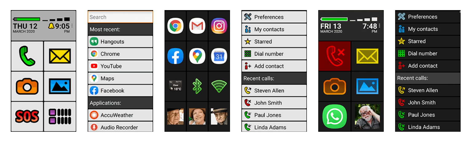 توجد العديد من التطبيقات الخاصة التي تم تصميمها بهدف جعل الهواتف الذكية مناسبة لكبار السن. مثل بيج لانشر و كذلك إلدير لونشر. هذه التطبيقات تقوم باستبدال الواجهة في الهاتف و أيضا بالتابلت ليحل محلها أزرار ونصوص ذات حجم كبير. علاوة على ذلك، تقوم تلك التطبيقات بتبسيط شاشة الهاتف الرئيسية وتقليص عدد الأيقونات والعناصر بها حتى يتمكن كبار السن من التعامل معها دون أي مشكلة.
