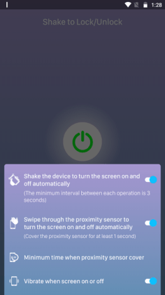هناك تطبيق يمكنك من فتح الهاتف من خلال هزة لطيفة للجهاز، وستستيقظ الشاشة بكل سهولة، ويمكنك أيضًا إيقاف التشغيل من خلاله.