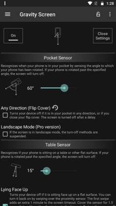 تطبيق مفيد للغاية إذا كان لديك زر طاقة مكسور، يمنه إيقاف تشغيل الشاشة تلقائيًا عند وضعها في جيبك أو على سطح مستو، ويمكنك اختيار الحفاظ على الشاشة قيد التشغيل أثناء تشغيل الجهاز، وتتيح لك شاشة جرافيتي ضبط وتهيئة الخدمة.