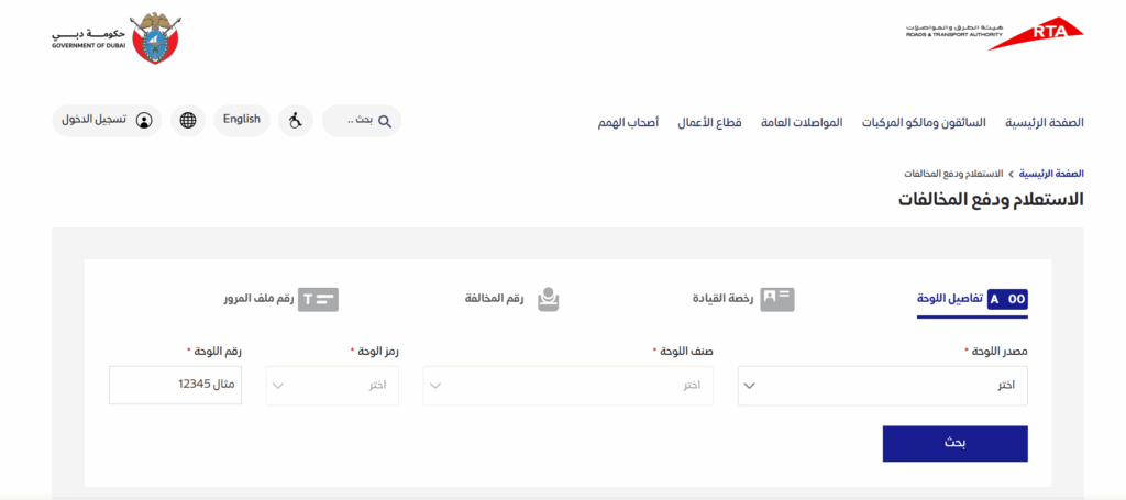 قم بتسجيل الدخول إلى حسابك، ثم انتقل إلى خدمة الاستعلام عن المخالفات. أدخل رقم الملف المروري أو لوحة السيارة أو رخصة القيادة أو حتى رقم المخالفة. بعد ظهور التفاصيل، حدد الغرامة المطلوب سدادها وأكمل الدفع باستخدام بطاقة الخصم أو الائتمان أو الدرهم الإلكتروني.