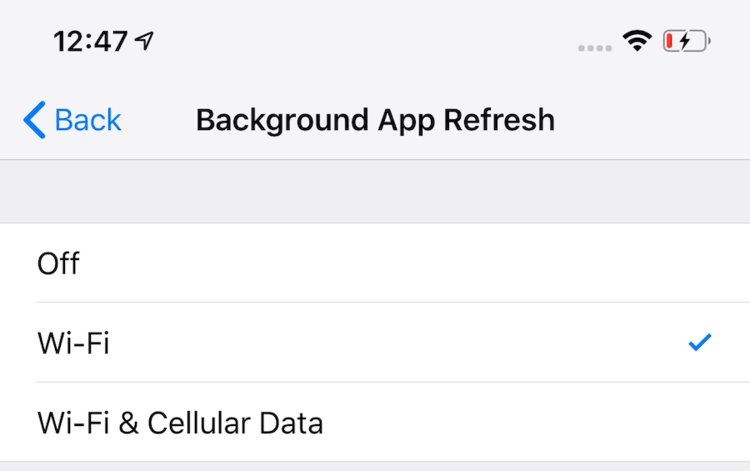 إذا كنت لا ترغب في تحديث التطبيقات في الخلفية، ولكنك لا ترغب في استنزاف بياناتك، فيُمكنك ضبط إعدادات هاتف أيفون الخاص بك ليعمل التحديث فقط في حالة الاتصال بشبكة الواي فاي، وسيؤدي ذلك إلى الحفاظ على عمر البطارية، نظرًا لأنه من المفترض ان هذه التطبيقات سيتم تحديثها كثيرًا.