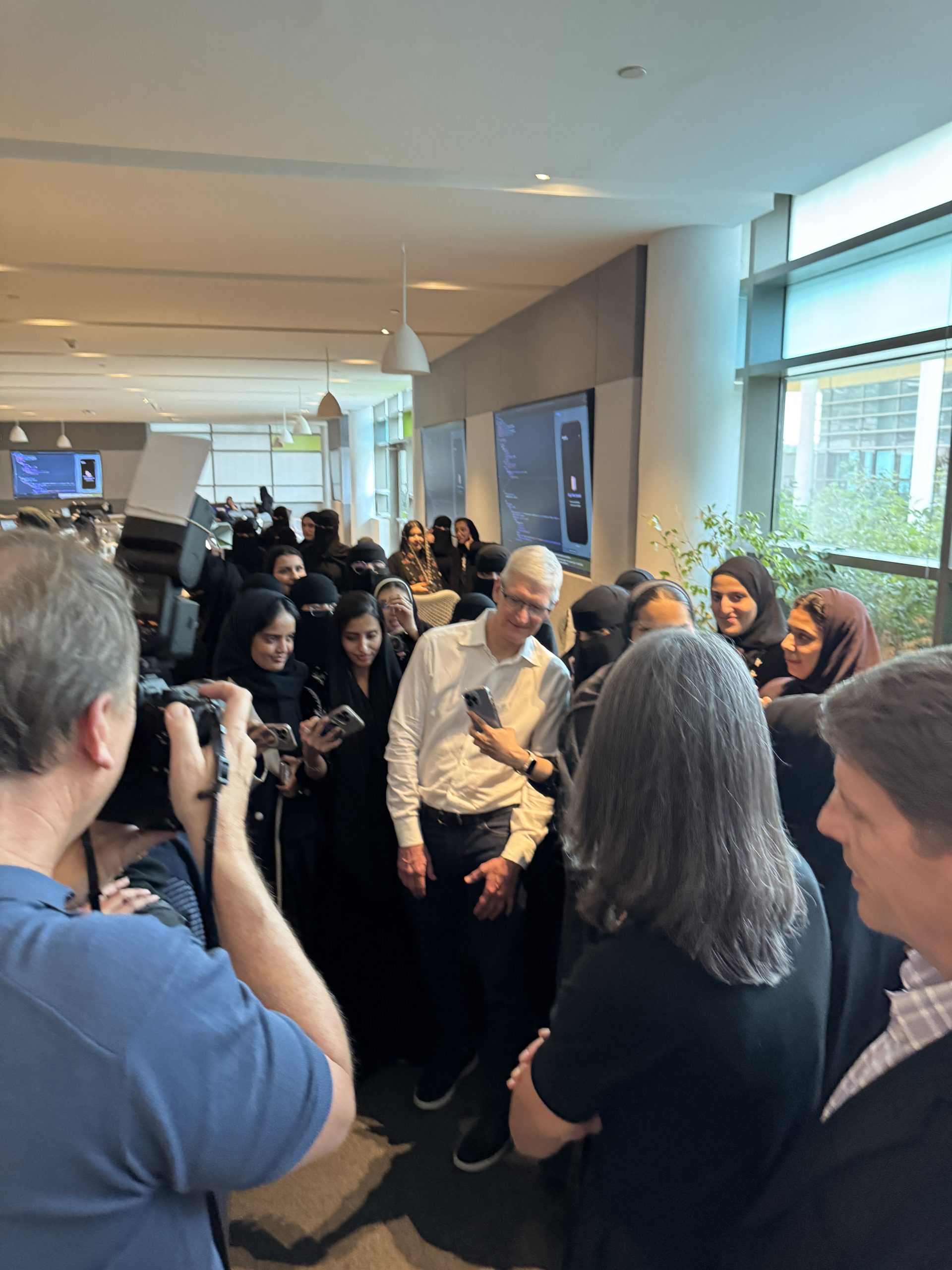 تم الإعلان عن هذا التوسع نحو السعودية ضمن زيارة مهمة قام بها رئيس الشركة، تيم كوك، إلى مدينة الرياض. حيث زار كوك أكاديمية مطوري Apple في المدينة، وكانت مينا تك حاضرة في الزيارة التي شملت مختلف أجنحة الأكاديمية، حيث تسنت لنا الفرصة لتوجيه بعض الأسئلة للسيد كوك، بالإضافة إلى استطلاع رأي طالبات الأكاديمية بالمنهاج وحجم الإنجاز الذي يحققنه. ويذكر أن هذه الزيارة إلى الأكاديمية ليست الأولى لمينا تك. حيث سبق وأن قمنا بزيارة الأكاديمية، وقابلنا مديرتها واستطلعنا آراء الطالبات في وثائقي قصير نشرناه مؤخراً. إذ تقدّم أكاديمية مطوري Apple، المخصصة للنساء وتقع في جامعة الأميرة نورة بنت عبد الرحمن، تدريباً عالمي المستوى للمبرمجات والمصممات ورائدات الأعمال الطموحات، مما يُهيئهن لمسيرة مهنية في الاقتصاد الرقمي المتنامي في المملكة. وقد أتم نحو 2,000 طالبة برامج تعليمية في الأكاديمية، وأصبحن الآن ينشرن تطبيقاتهن على متجر App Store لجمهور محلي وعالمي.