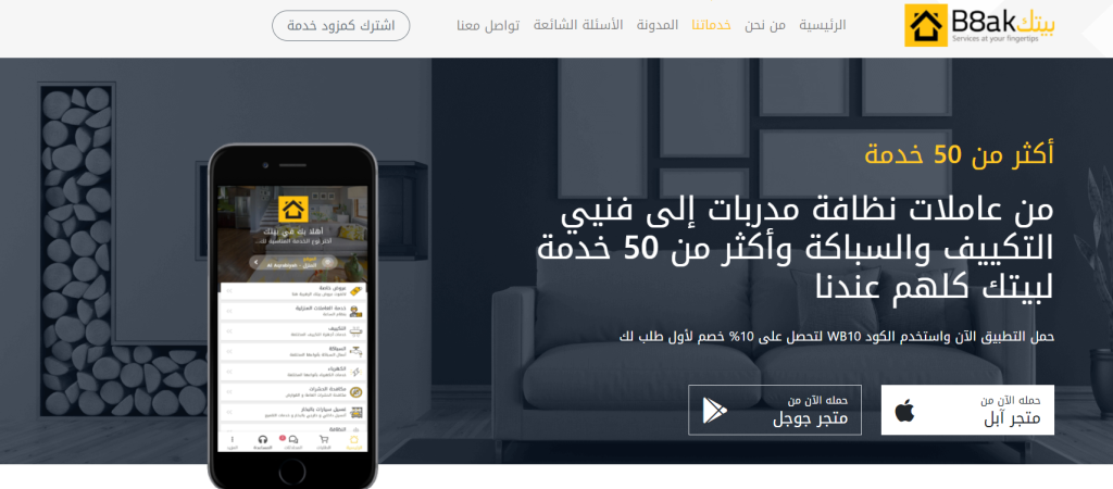 يمكن القول بأن بيتك هو افضل تطبيق صيانة منزلية في السعودية حيث يوفر لك b8ak عناء البحث عن فني مناسب ذو خبرة من أجل حل أي عطل في المنزل. ومع بيتك سوف تكون قادر على طلب فني تكييفات أو سباك أو كهربائي وخلال فترة قصيرة سوف تجد الفني في المكان المحدد لإصلاح مشكلتك في ثواني. ومع b8ak تستطيع طلب سباك لتسليك المواسير أو صيانة وإصلاح أي مشكلة بالأجهزة الكهربائية المختلفة وهناك خدمات أخرى مفيدة جدا يوفرها التطبيق مثل تنظيف السيراميك والأثاث وخزانات المياه. أيضا يمكنك طلب عاملات نظافة بالساعة أو حتى بالشهر إلى جانب خدمات التعقيم ومكافحة الحشرات والآفات وأيضا متوفر فني لتركيب الريسيفر والستلايت بكل سهولة. مع تطبيق بيتك وداعا لضياع وقتك في العثور على حل لمشكلتك.
