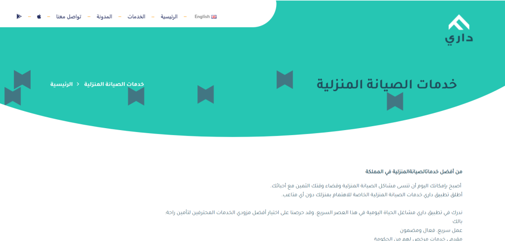 يعد داري أحد أفضل 5 تطبيقات صيانة منزلية في السعودية ولعل شهرته وقوته تكمن في أنه يوفر حلول مرنة وسريعة تساعدك على إصلاح أي مشكلة في منزلك. ويوفر DARI مجموعة متنوعة من خدمات الصيانة المنزلية التي يبحث عنها أي مواطن أو مقيم في المملكة وهذا يشمل، فك وتركيب الأثاث والكهرباء كما لديه فنيين على أعلى مستوى لإصلاح أي أعطال أو مشاكل في السباكة والنجارة وفتح وتغيير الأقفال. وبجانب خدمات الصيانة، يوفر داري خدمات أخرى مهمة لكل منزل بما في ذلك، غسيل وكي الملابس وخدمات التنظيف ومكافحة الآفات وحتى غسيل السيارة وصيانة المكيف.