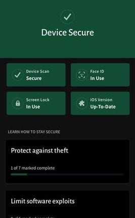 وهذه الميزة جيدة جدًا لأنّه من الصعب للغاية اكتشاف ما إذا تم اختراق جهاز آيفون الخاص بك، لذلك وجود أداة تراقب علامات الاختراق يُريحك من القلق حول ما إذا تم اختراق آيفونك.