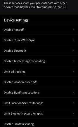كما يمنحك التطبيق قائمة شاملة بالتعديلات والتغييرات التي يمكنك إجراؤها للحفاظ على أمان جهازك، ومن المحتمل أن تكون الكثير من هذه الأشياء مبالغة بالنسبة للمستخدم العادي، لكن بالنسبة للمستخدم المتقدم أو الواعي بالأمان، فإن هذا التطبيق هو منجم معلومات.
