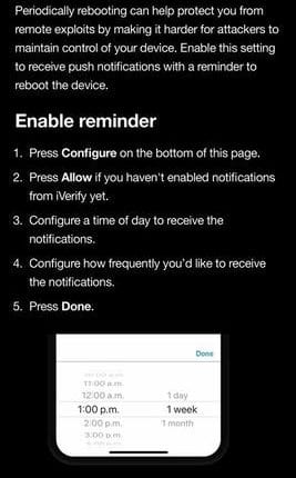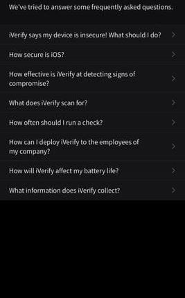 حيث يمكنك أن تجعل آيفونك أكثر أمانًا عبر استخدام تطبيقات الحماية والأمان المختلفة على iOS، ومنها مثلًا تطبيق iVerify الذي طورته شركة Trail of Bits ويحتوي على الكثير من المميزات رغم حجمه الصغير.