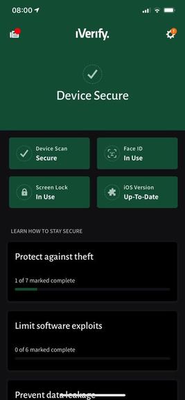حيث يمكنك أن تجعل آيفونك أكثر أمانًا عبر استخدام تطبيقات الحماية والأمان المختلفة على iOS، ومنها مثلًا تطبيق iVerify الذي طورته شركة Trail of Bits ويحتوي على الكثير من المميزات رغم حجمه الصغير.