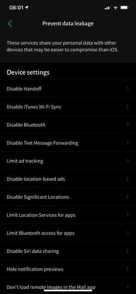 كما يمنحك التطبيق قائمة شاملة بالتعديلات والتغييرات التي يمكنك إجراؤها للحفاظ على أمان جهازك، ومن المحتمل أن تكون الكثير من هذه الأشياء مبالغة بالنسبة للمستخدم العادي، لكن بالنسبة للمستخدم المتقدم أو الواعي بالأمان، فإن هذا التطبيق هو منجم معلومات.