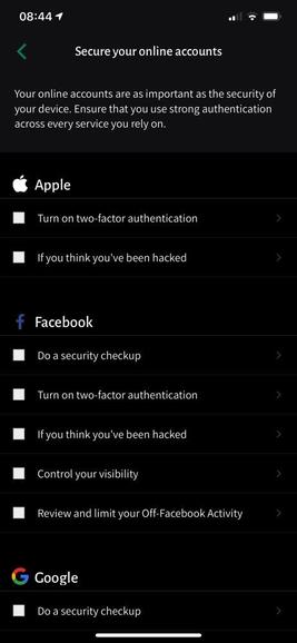 وهناك أيضًا مجموعة كاملة من المميزات الرائعة الأخرى، مثل المعلومات حول تأمين حسابات أبل وفيسبوك وجوجل وإنستجرام ولينكد إن وتويتر، ومعلومات حول تنشيط DNS عبر HTTPS، والتذكير الدوري بإعادة التشغيل لحماية نفسك من عمليات الاستغلال عن بُعد.