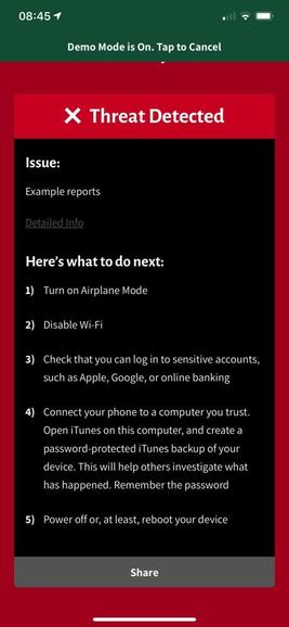 وهذه الميزة جيدة جدًا لأنّه من الصعب للغاية اكتشاف ما إذا تم اختراق جهاز آيفون الخاص بك، لذلك وجود أداة تراقب علامات الاختراق يُريحك من القلق حول ما إذا تم اختراق آيفونك.