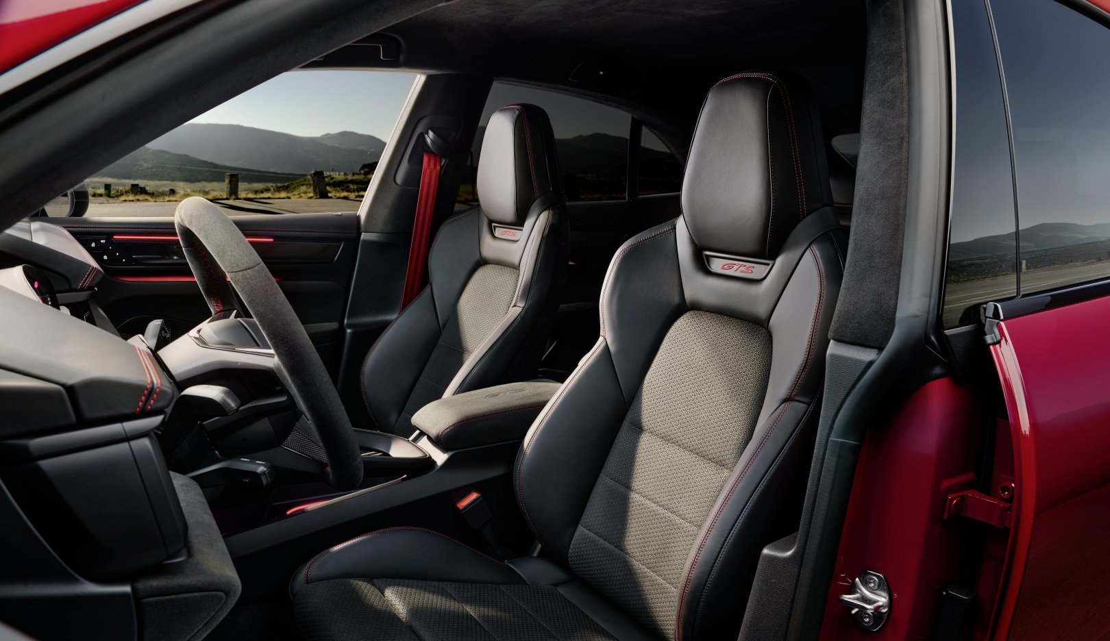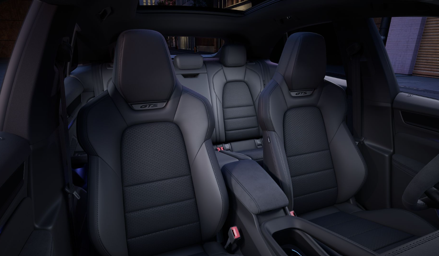 من النظرة الأولى، يعرف عشاق بورشه أن هذه النسخة تنتمي لعائلة GTS المميزة. فالتصميم يأتي بلمسات سوداء رياضية على المصدات والجوانب. ومصابيح أمامية داكنة وعجلات قياس 21 بوصة قابلة للترقية إلى 22 بوصة لمن يريد مظهرًا أكثر شراسة. أما المقصورة الداخلية فتغلب عليها خامة Race-Tex الفاخرة، التي تمنح السيارة إحساسًا رياضيًا راقيًا، مع خيارات ألوان متعددة تضيف لمسة شخصية لكل سائق.
