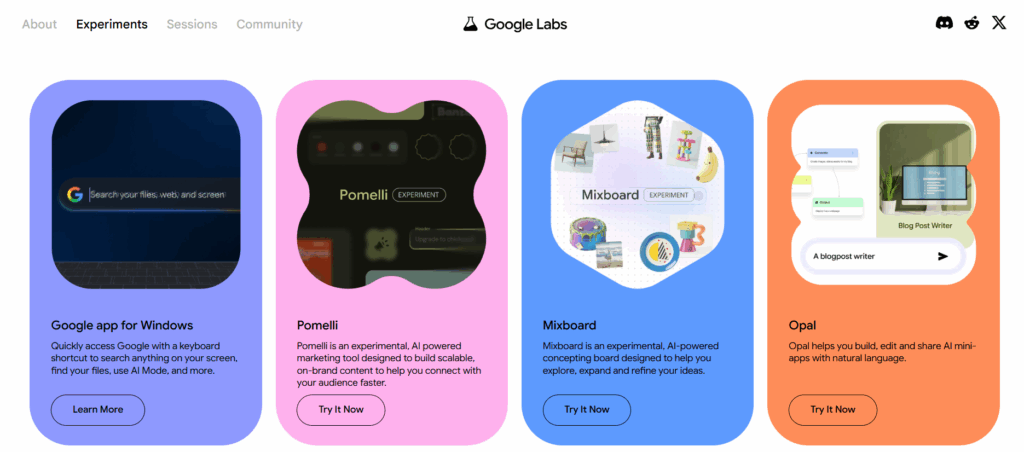 • تصفح التجارب المتاحة واختر أداة Google Opal.