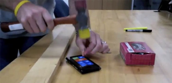 اختبار شاشة Nokia Lumia 900 بالمطرقة والمسامير (فيديو)