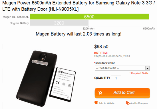 Mugen تطرح بطارية سعتها 6500 مللي امبير لهاتف سامسونج جالاكسي نوت 3