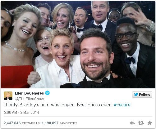 اشهر تغريدة في التاريخ تصل عبر حفل توزيع الاوسكار