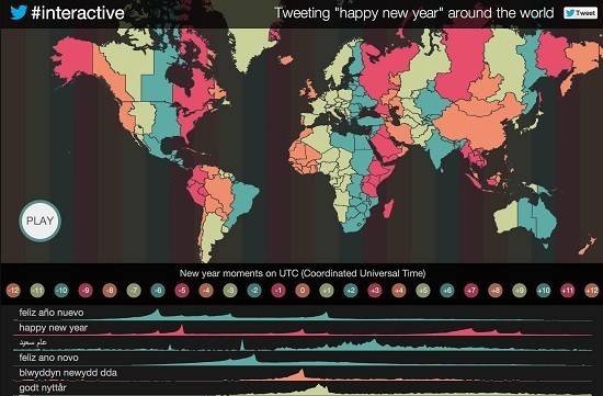 شاهد كيف تنتشر عبارة Happy New Year بكل اللغات عبر العالم على تويتر