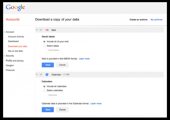 امكانية تحميل جميع رسائل و المواعيد الـ Gmail على حاسبك