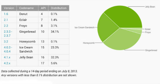 اصدار Jelly Bean يملك غالبية نظام الاندرويد