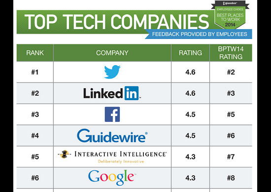 تويتر يطيح بفيسبوك كأفضل شركة تكنولوجيا للعمل بها