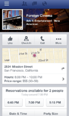 امكانية الحجز في المطاعم من خلال تطبيق فيسبوك