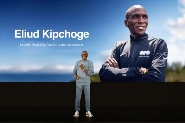 Two-time Olympic marathon champion Eliud Kipchoge was introduced as global ambassador for the WATCH GT Runner. He stated that running represents more than speed and highlighted his collaboration with Huawei to reach runners worldwide.