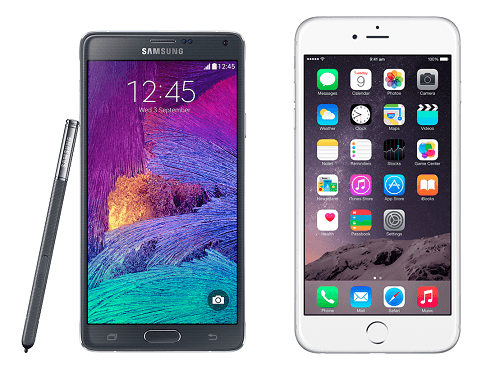 مقارنة بين جالكسي نوت 4 وايفون 6 بلس