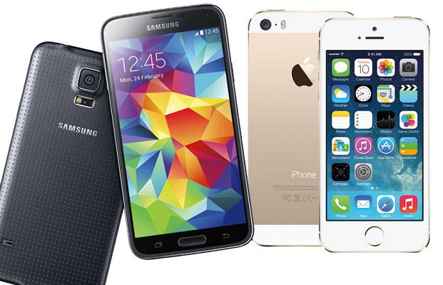 مقارنه سريعة بين سامسونج اس 5 و ايفون 5 اس