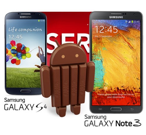 و ستحصل هواتف سامسونج جالكسي اس 4 و جالكسي نوت 3 على تحديث الكيت كات 4.4، بحيث يصدر في أواخر شهر يناير أو أوائل فبراير 2014.