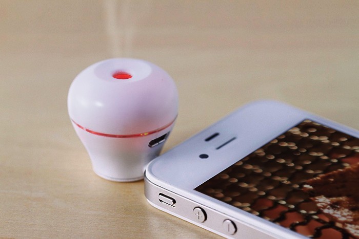 Scentee يُشبك مع هاتفك عن طريق منفذ السماعة، و يأتي معه تطبيق على هاتفك الذكي لإعداده لإطلاق الروائح عند وصولك الإشعارات.