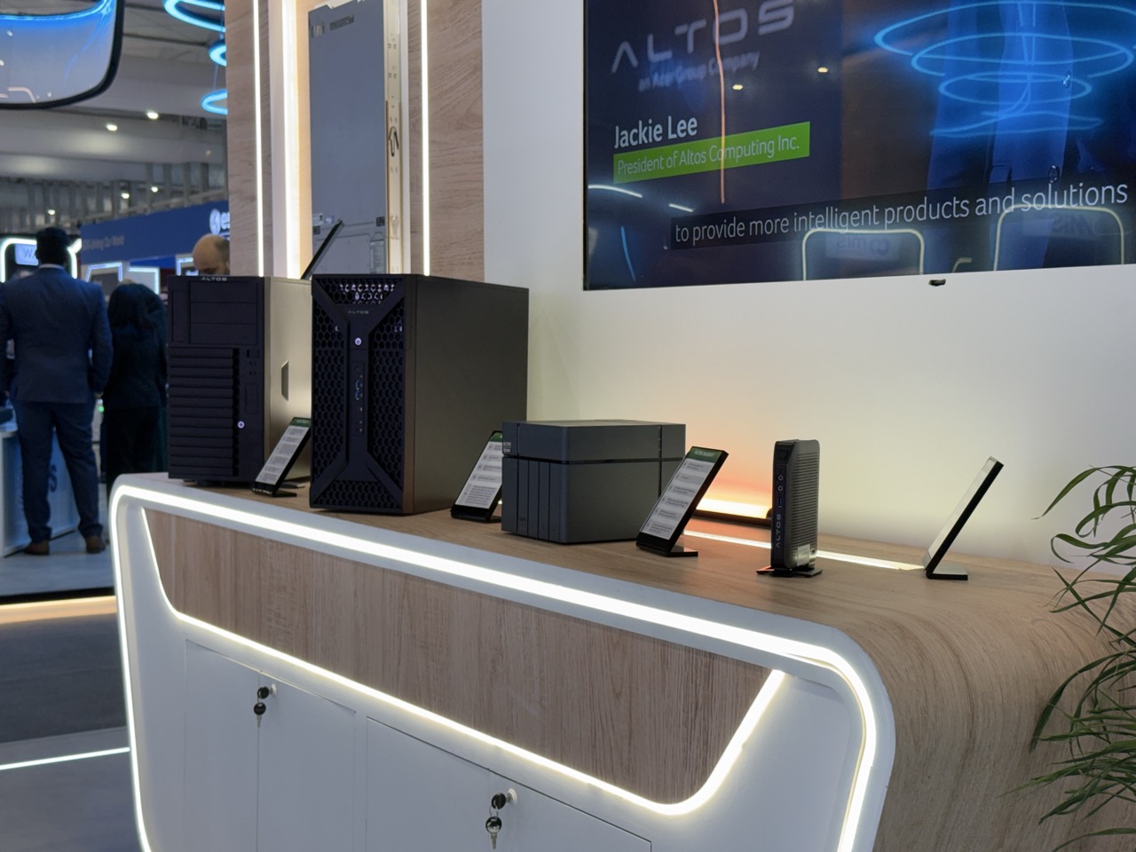 تستعرض Acer خوادمها، بما يشمل Altos BrainSphere T350 F5، وهو خادم برجي مزدوج المعالجات قابل للتثبيت على رف، وAltos R360 F5، وهو نظام قوي بحجم 1U مثالي للبنى التحتية السحابية وعمليات الحوسبة عالية الأداء، وAltos P130 F9، والمزود بمعالجات Intel Core من الجيل 14 وذاكرة من نوع DDR5 ECC، مما يجعله خياراً مثالياً للمهام المكثفة التي تتطلب فاعلية موثوقة وأداءً مستداماً.