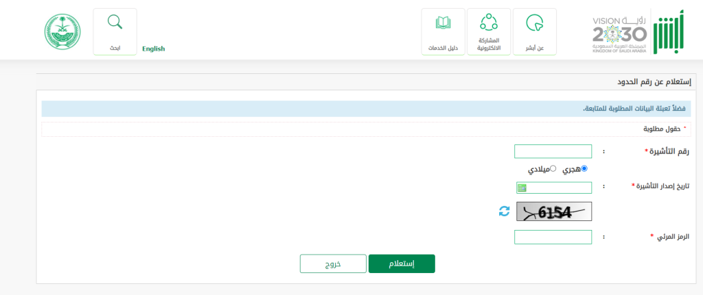 - اكتب البيانات المطلوبة في الصفحة الظاهرة من رقم الهوية الوطنية، تاريخ الميلاد ورقم الحدود.